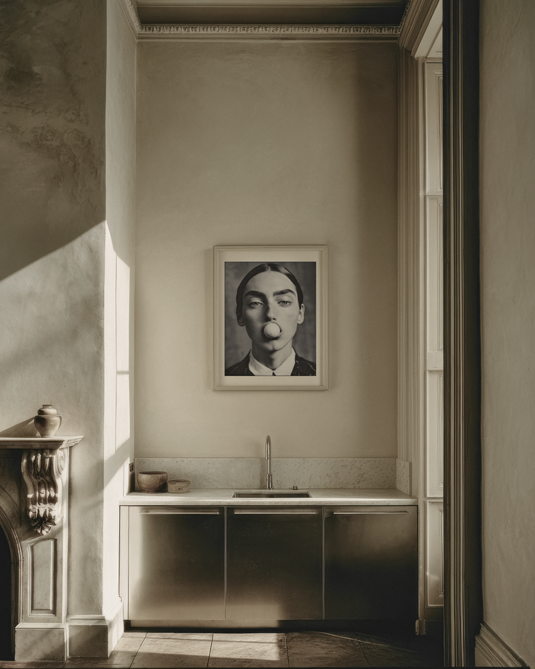“Before” is an ode to the fragile, sacred space that exists just prior to becoming — that breath held between silence and creation. The egg, ancient symbol of tenderness and potential, appears here as a quiet universe of its own, asking us to lean in, to witness the unseen work of beginnings.