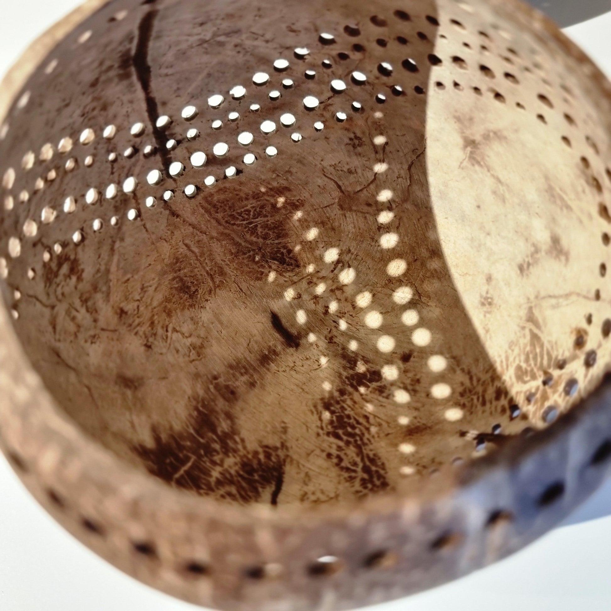 When night falls, the hand-carved perforations awaken, spilling gentle constellations of light across your walls like whispers from another world. We love it paired with a simple string of warm fairy lights, letting the glow pulse softly from within. Should you choose the raw romance of a tealight flame, cradle it in a glass holder and keep loving watch — fire, like the heart, must be treated with reverence.
