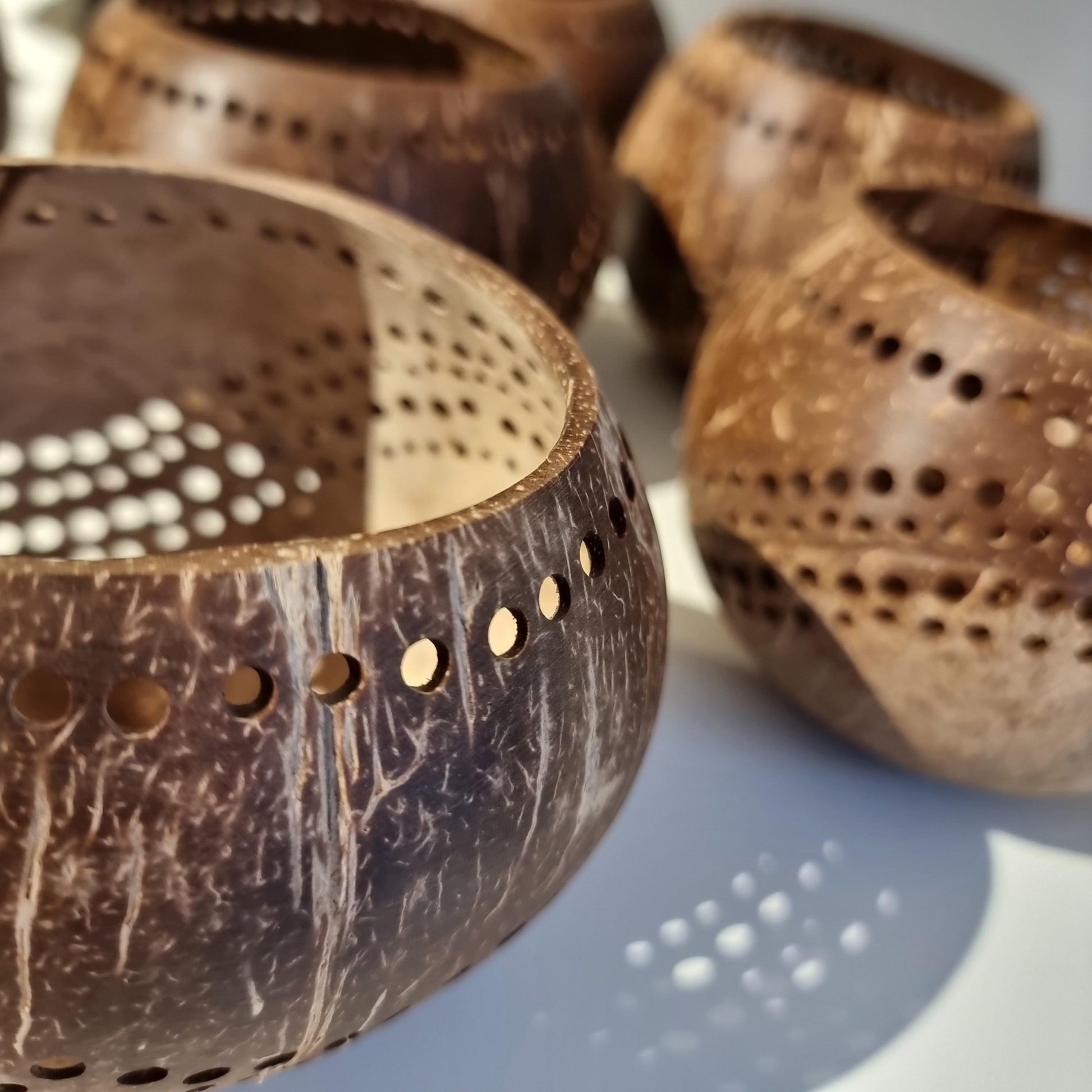 Born from palm winds and distant shores, the Moonshell Lantern carries the soul of the wild. Handcrafted from a real coconut shell, no two are ever the same — each one a wandering spirit with its own markings, its own quiet story.