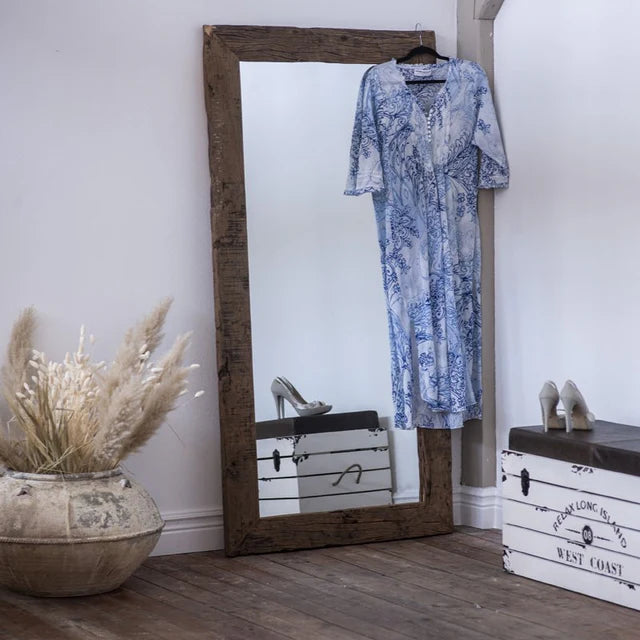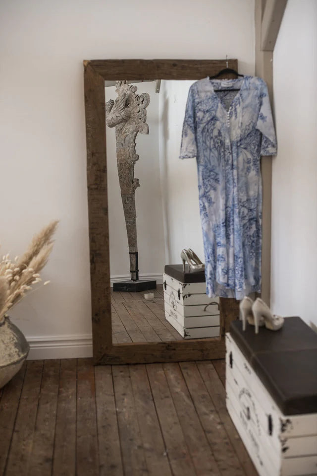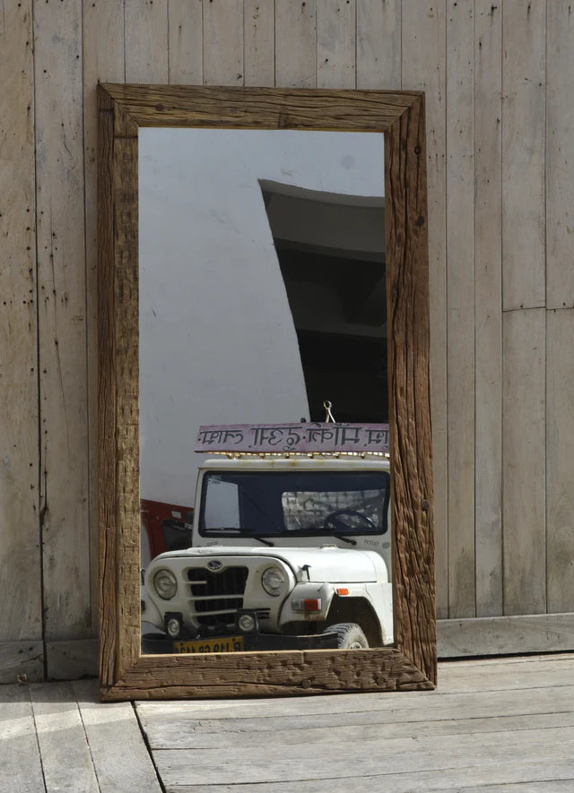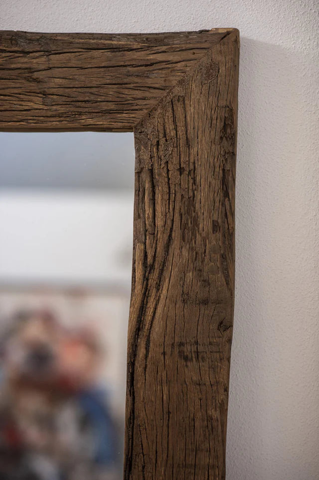 Atemberaubender und robuster Spiegel im Vintage-Stil, gerahmt in massivem Altholz. Dieses außergewöhnliche Statement-Stück verleiht jedem Raum zeitlosen Charme!