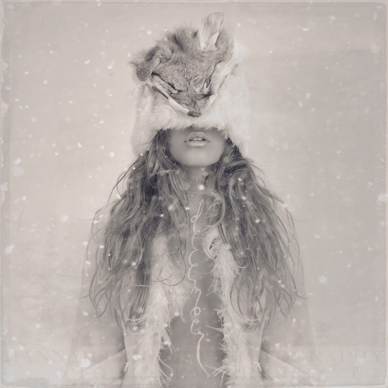Created in collaboration with the ever-visionary and beautifully talented Hannah Lemholt, this black-and-white winter portrait carries the quiet power of a Love Warrior: mystical, resolute, wrapped in soft snowflakes and the hush of the wild.