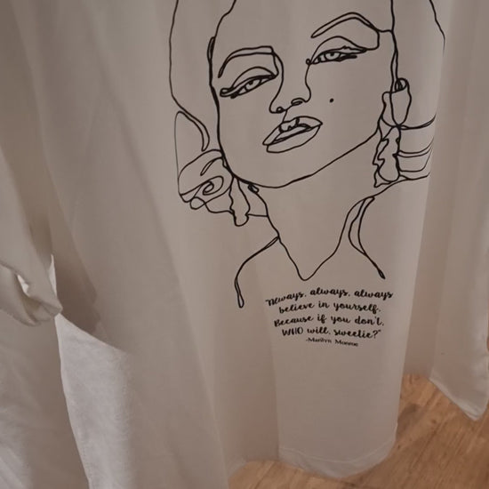 A tribute to spirit, softness, and unapologetic confidence. Our Marilyn T-shirt is crafted in Italy from 100% crisp white cotton, shaped in a relaxed One Size silhouette that drapes with effortless grace. The folded sleeves add that subtle touch of luxury we love.
