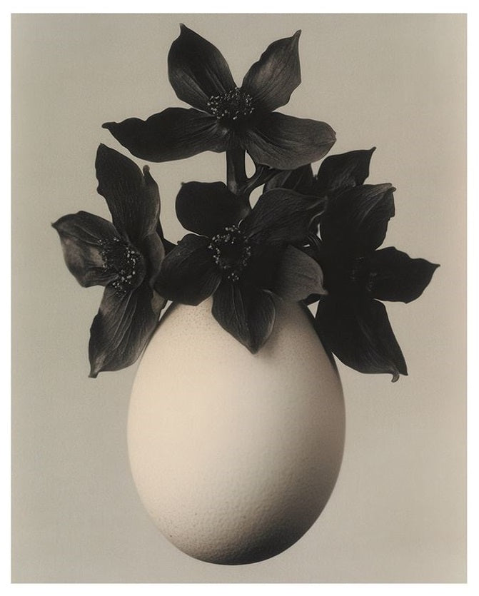 “Origin” is a quiet hymn to beginnings — the kind that unfold in their own time, in their own way, long before the world notices. A single egg holds its perfect shape, trying to remain whole, while flowers push softly outward, rising toward the light as if answering an ancient calling.