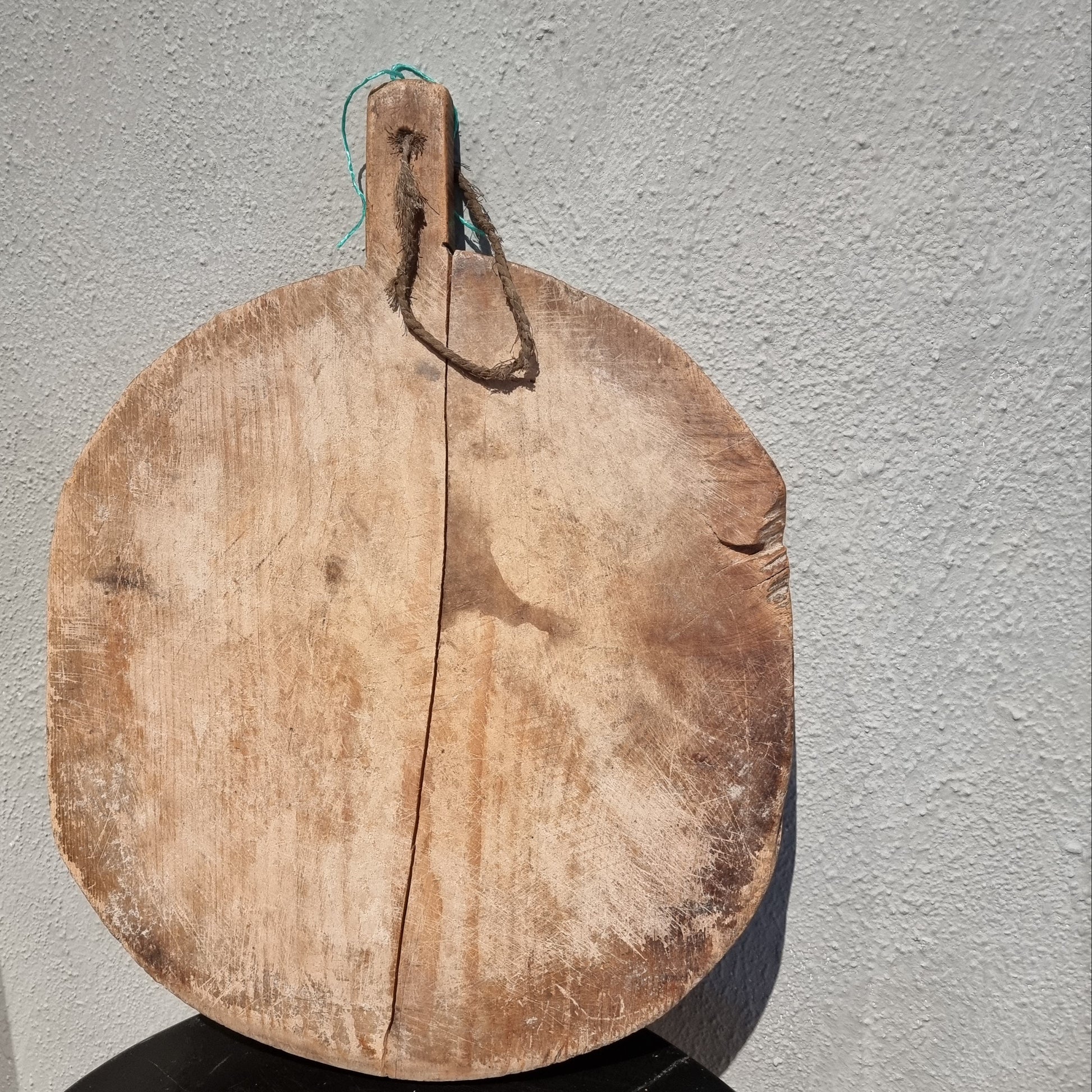 A beautiful old breadboard carrying the marks of time — each one with its own story, worn smooth by many hands and countless meals shared. Use it as a serving board for charcuterie or pizza, or as a cutting board in your everyday rituals. It also makes a stunning kitchen detail, just as lovely leaning against a wall as hanging on display.